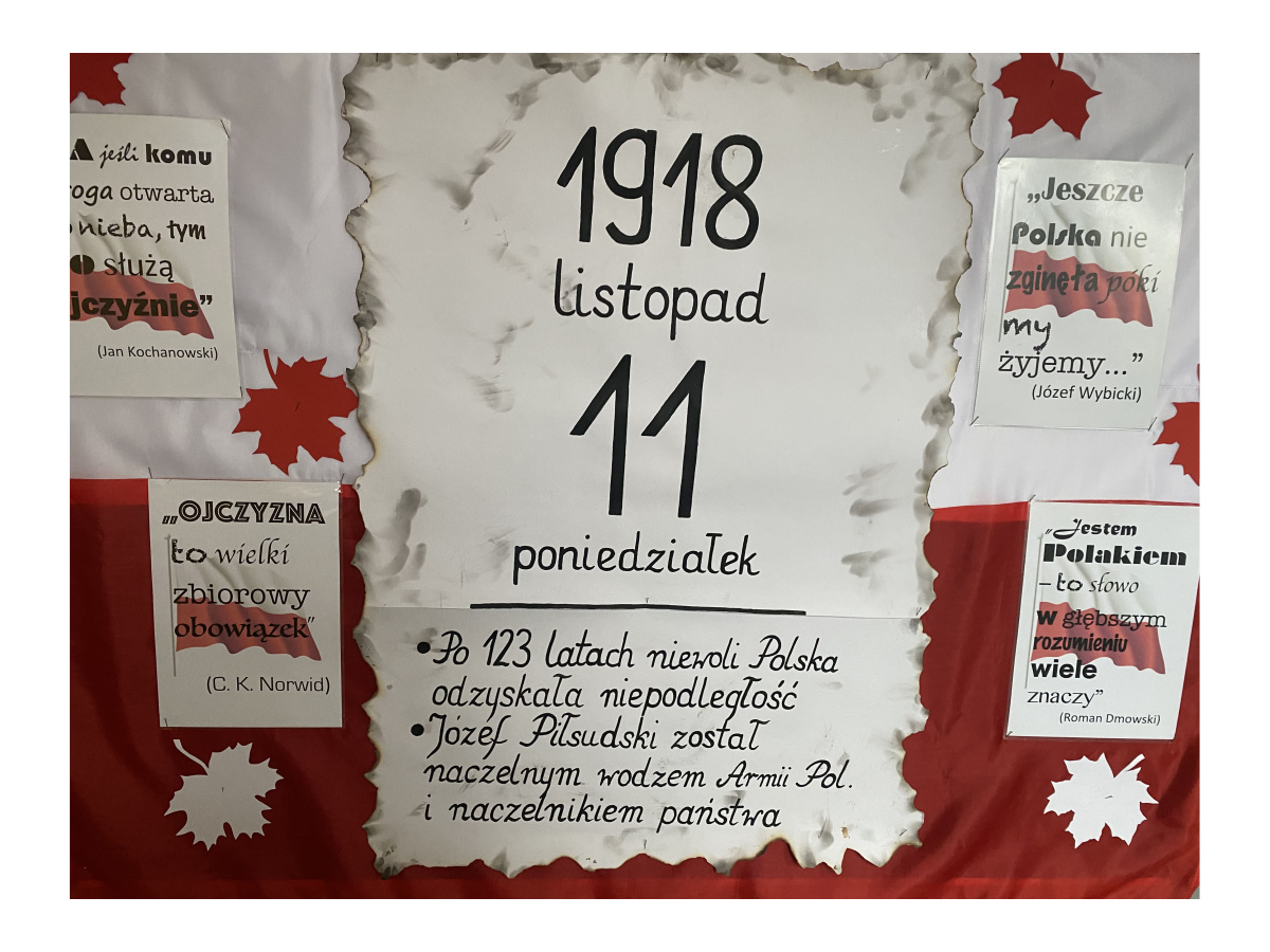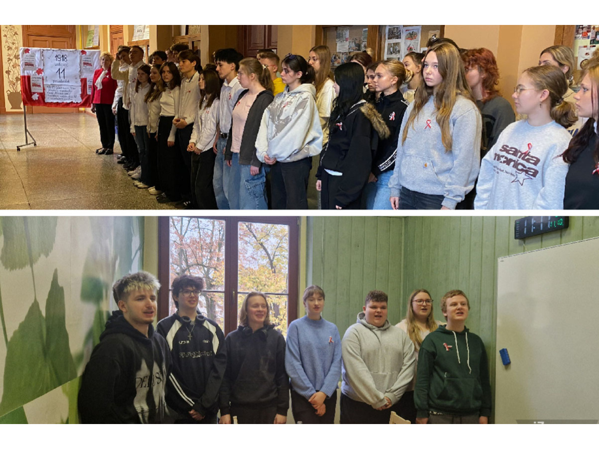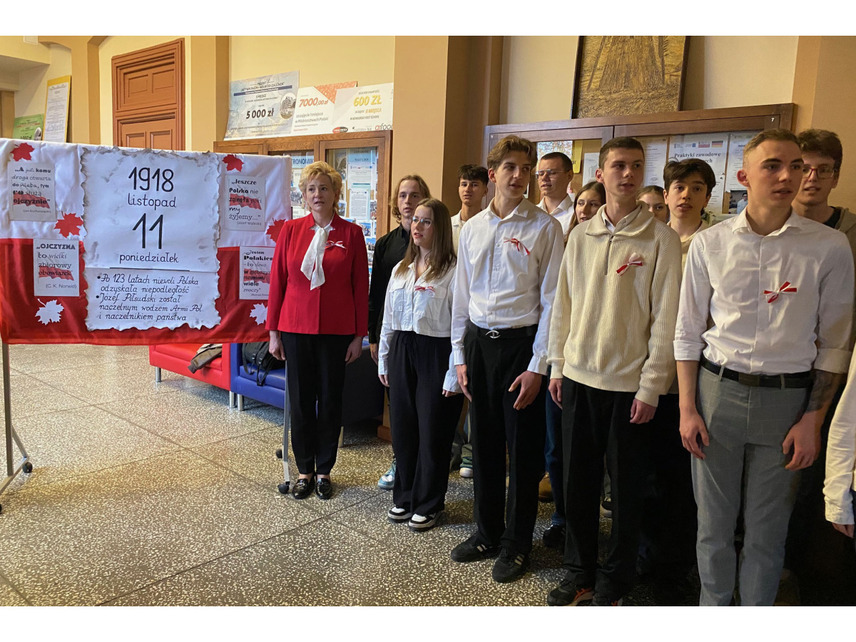 10 listopada nasza szkoła włączyła się w obchody 107. rocznicy odzyskania niepodległości przez Polskę. Hol szkoły ozdobiła okolicznościowa dekoracja. Przedstawiciele Samorządu Uczniowskiego rozdawali uczniom kotyliony, zachęcając do wspólnego świętowania obchodów Narodowego Święta Niepodległości. Na lekcjach historii nauczyciele przypominali okoliczności odzyskania niepodległości przez Polskę w 1918 roku. Uczniowie wzięli udział w akcji „Szkoła do hymnu 2025” organizowanej przez Ministerstwo Edukacji Narodowej. O godzinie 11.11 w klasach oraz na holu głównym szkoły odśpiewano w atmosferze powagi i szacunku hymn Polski.