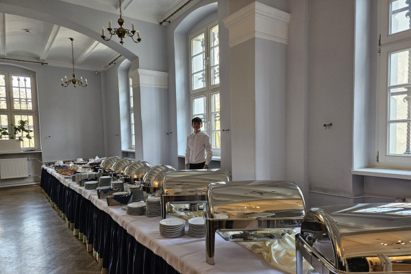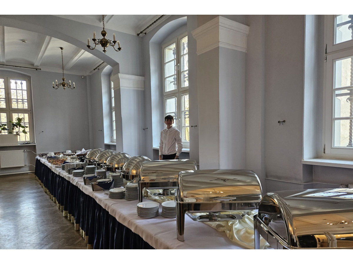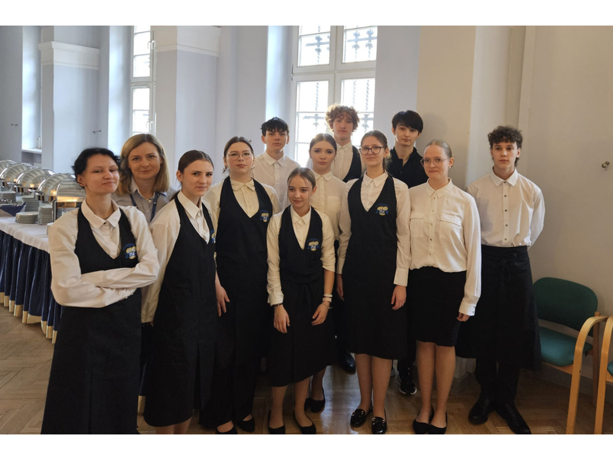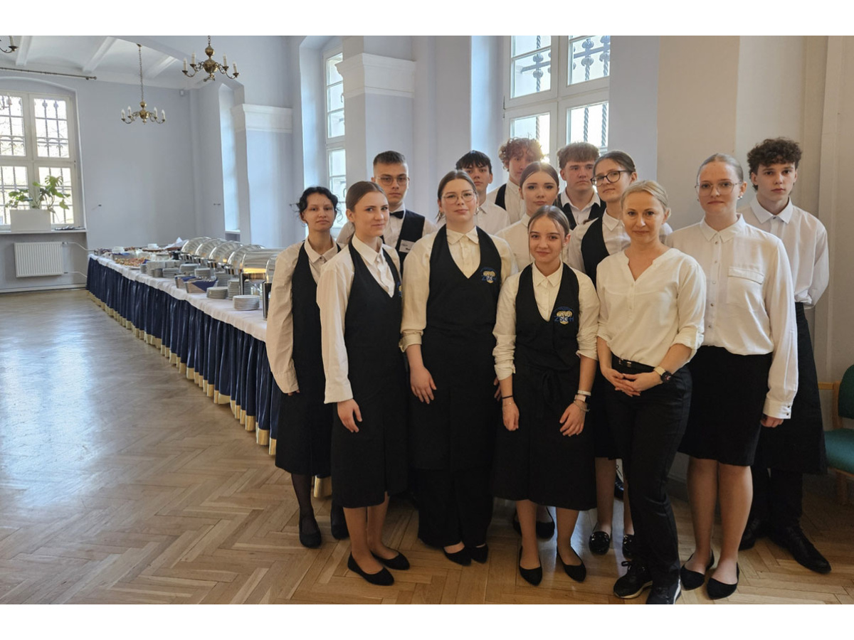 19.03.2026 r. Warsztaty Szkolne ZSG-H przygotowały poczęstunek dla zaproszonych gości w Urzędzie Wojewódzkim z okazji obchodów 45. rocznicy Bydgoskiego Marca 1981 oraz uroczystej sesji Sejmiku Wojewódzkiego. Bogato zastawiony stół zachwycał wyglądem, smakiem i aromatem przygotowanych potraw. Obsługę nadzorowała p. Aleksandra Daszuta-Kosiak z uczniami z klas 4eTG i 3 KH oraz p. Hanna Pasera z klasą 3cTG. Ogromne podziękowania kieruję dla nauczycieli: p. Agnieszki Licy, p. Katarzyny Kubery, p. Sławomira Kucharskiego oraz pracowników obsługi za przygotowanie uroczystości i wsparcie logistyczne.