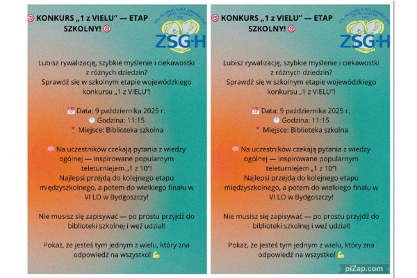 Czytaj więcej!Szkolny etap konkursu 1 z VIELU