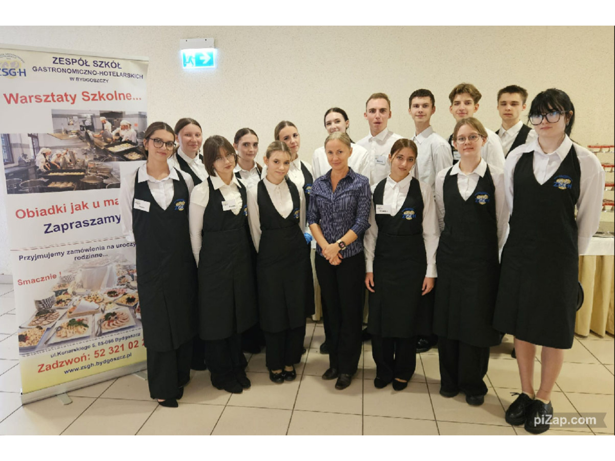 15. października 2025 na Politechnice Bydgoskiej odbyły się uroczyste obchody "Dnia Edukacji Narodowej". Warsztaty Szkolne ZSG-H przygotowały słodki poczęstunek pod kierunkiem p. Ewy Gajdemskiej oraz p. Agnieszki Lica. Uczniowie z klas: 1bTG, 3KH, 4dTG, 4eTG, 4bTG i 4KH, wykazali się sprawną i profesjonalną obsługą, którą nadzorowały panie: Marzena Płachcińska i Aleksandra Daszuta-Kosiak.