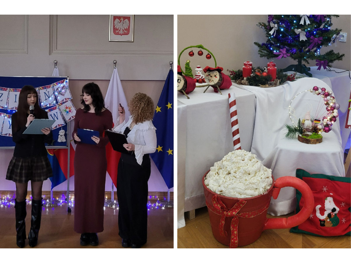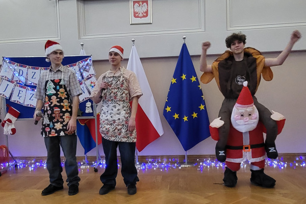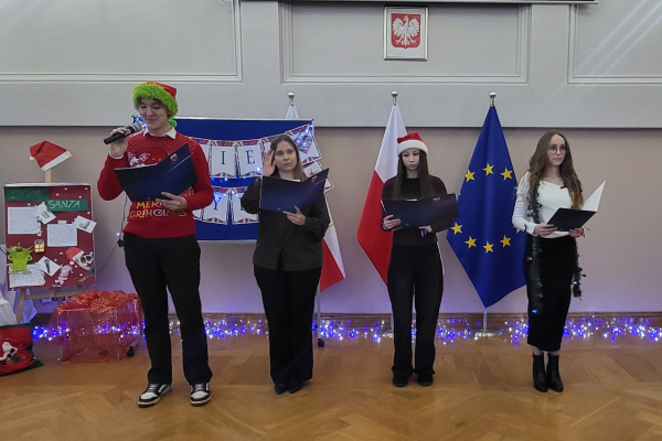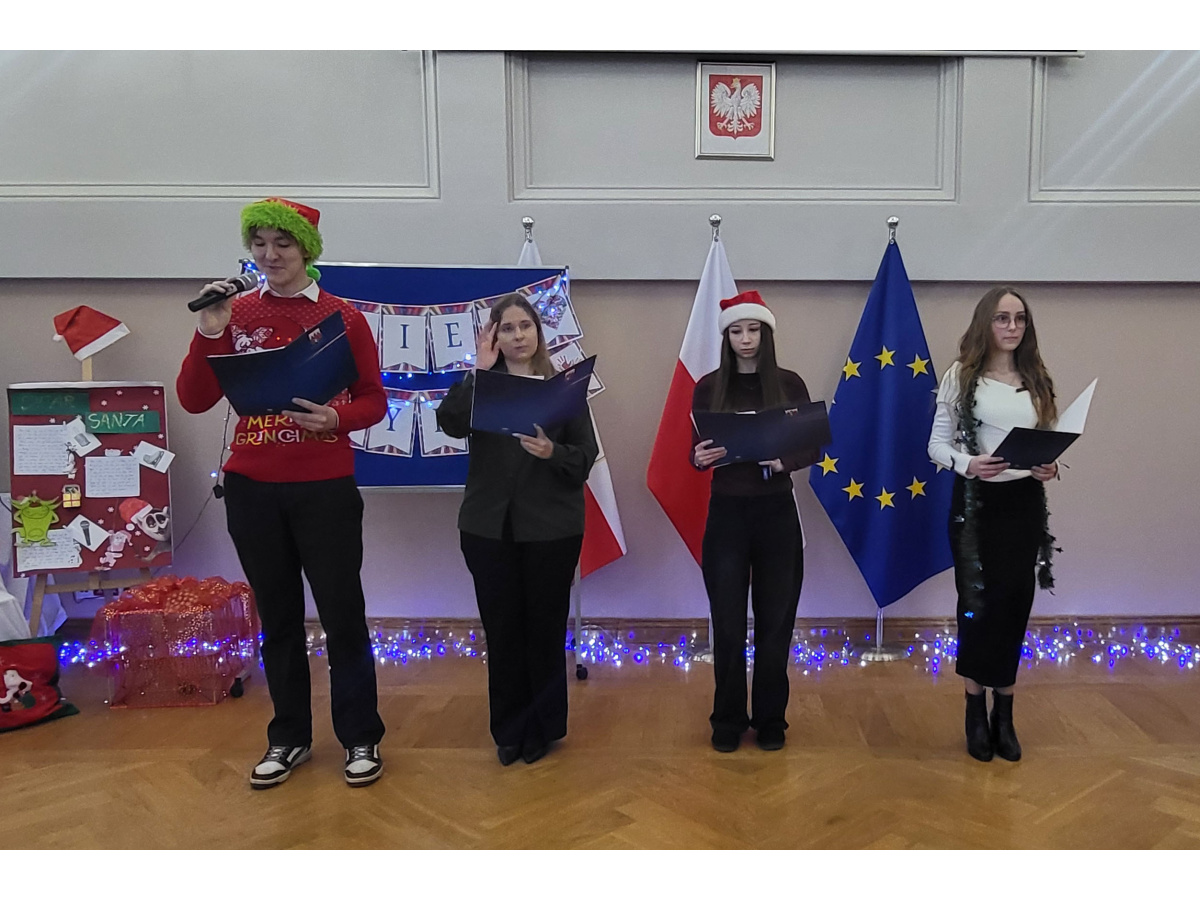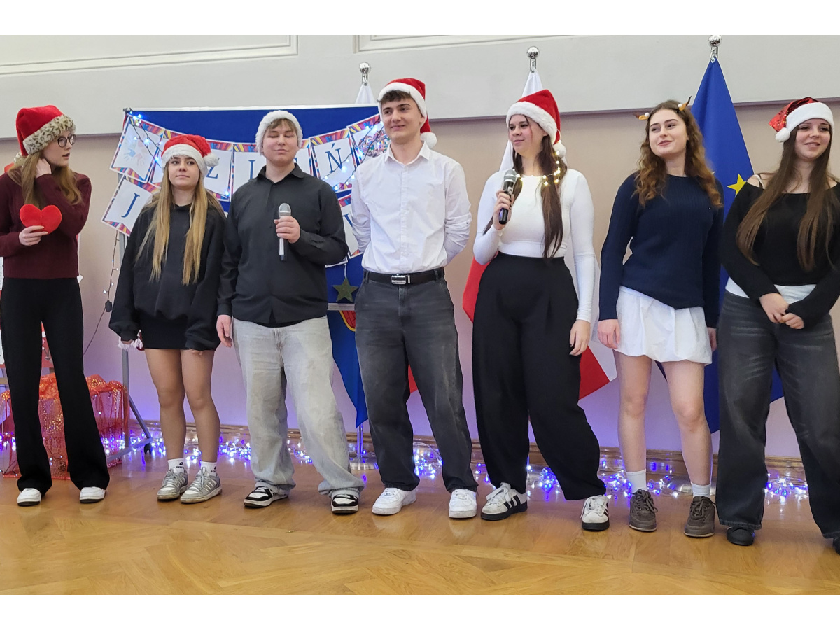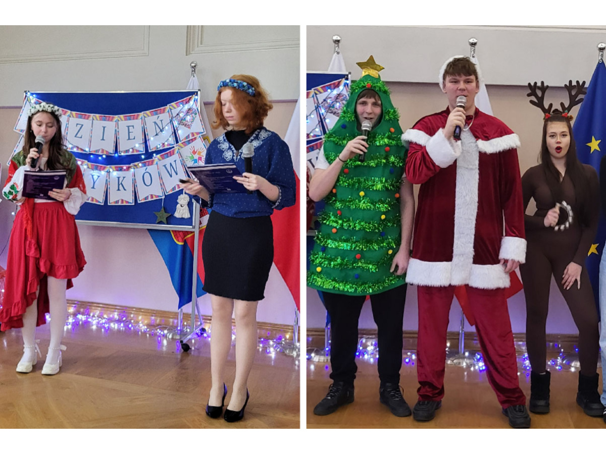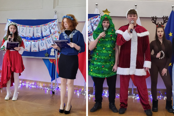 17 grudnia w naszej szkole odbył się Dzień Języków Obcych, który był wyjątkowym wydarzeniem, pełnym radości, kreatywności i dobrej zabawy. Wydarzenie utrzymano w klimacie zbliżających się Świąt Bożego Narodzenia. Uczniowie mieli okazję poznać różnorodność języków i kultur z obszaru języków, których uczą się na co dzień. Program artystyczny obfitował w wiele ciekawych występów: wokalnych, recytatorskich oraz teatralnych. Młodzież w humorystyczny i pomysłowy sposób przedstawiła sytuacje, takie jak wizyta w restauracji czy spotkanie ze Świętym Mikołajem, wykorzystując języki obce w praktyce. Dzień Języków Obcych był nauką poprzez zabawę, okazją do zaprezentowania talentów artystycznych, ale również dniem pełnym pozytywnych emocji, który na długo pozostanie w naszej pamięci.