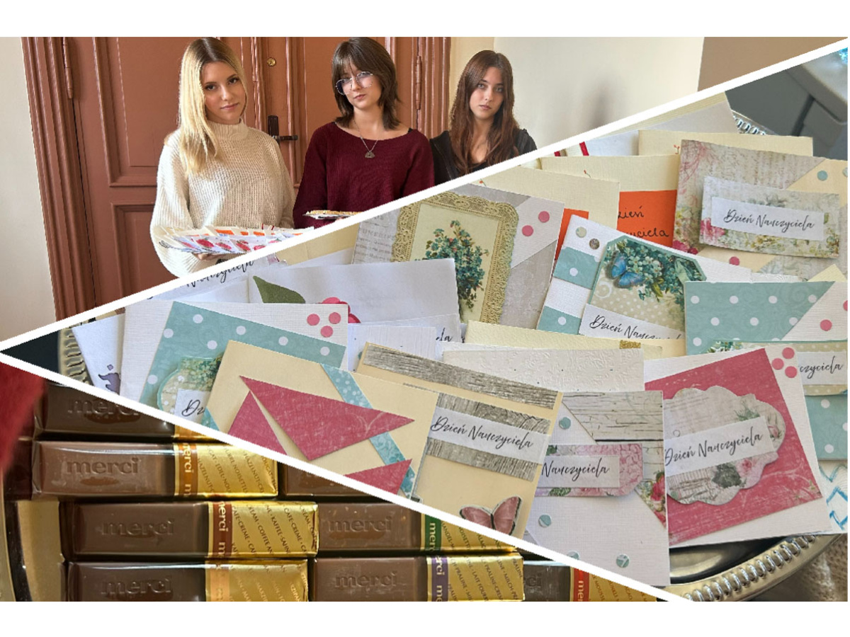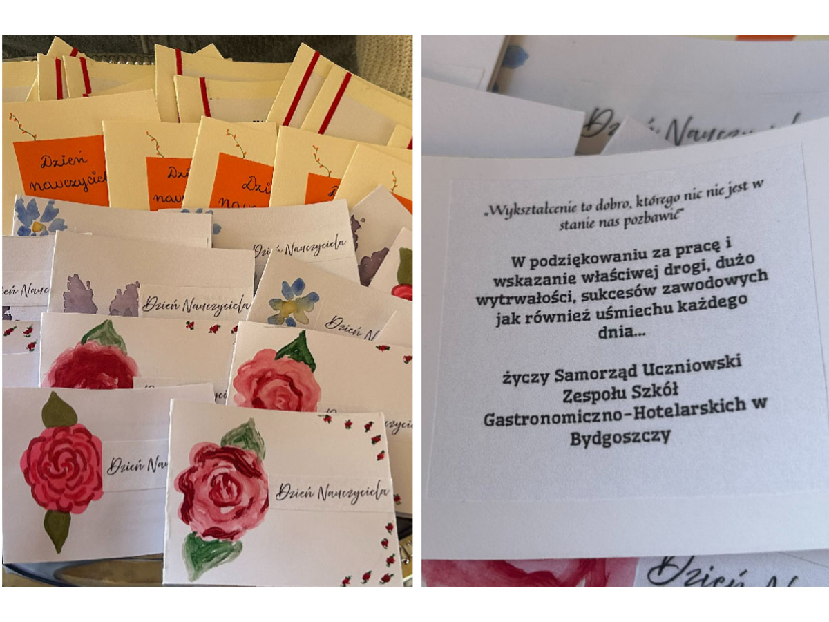 13 października z okazji Dnia Nauczyciela uczennice z 4eTG rozdawały nauczycielom i pracownikom szkoły czekoladki oraz własnoręcznie wykonane laurki z życzeniami. Dziękujemy młodzieży za docenienie naszej pracy.