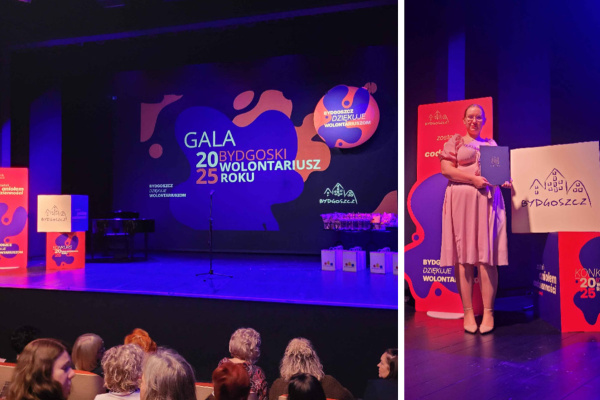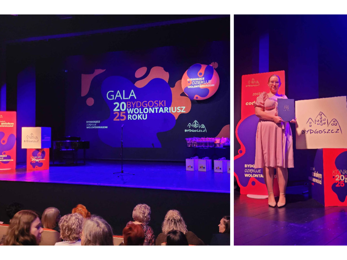 5 grudnia 2025 w Teatrze Kameralnym odbyła się coroczna gala Bydgoskiego Wolontariusza Roku. Naszą szkołę reprezentowała: Jagoda Romel z 5KT, która otrzymała podziękowania w kategorii wolontariusz młodzieżowy. Gala była znakomitą okazją do podsumowania działań wszystkich wolontariuszy oraz wyrażenia wdzięczności za ich zaangażowanie.