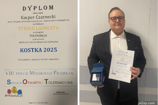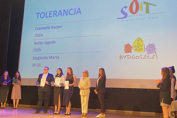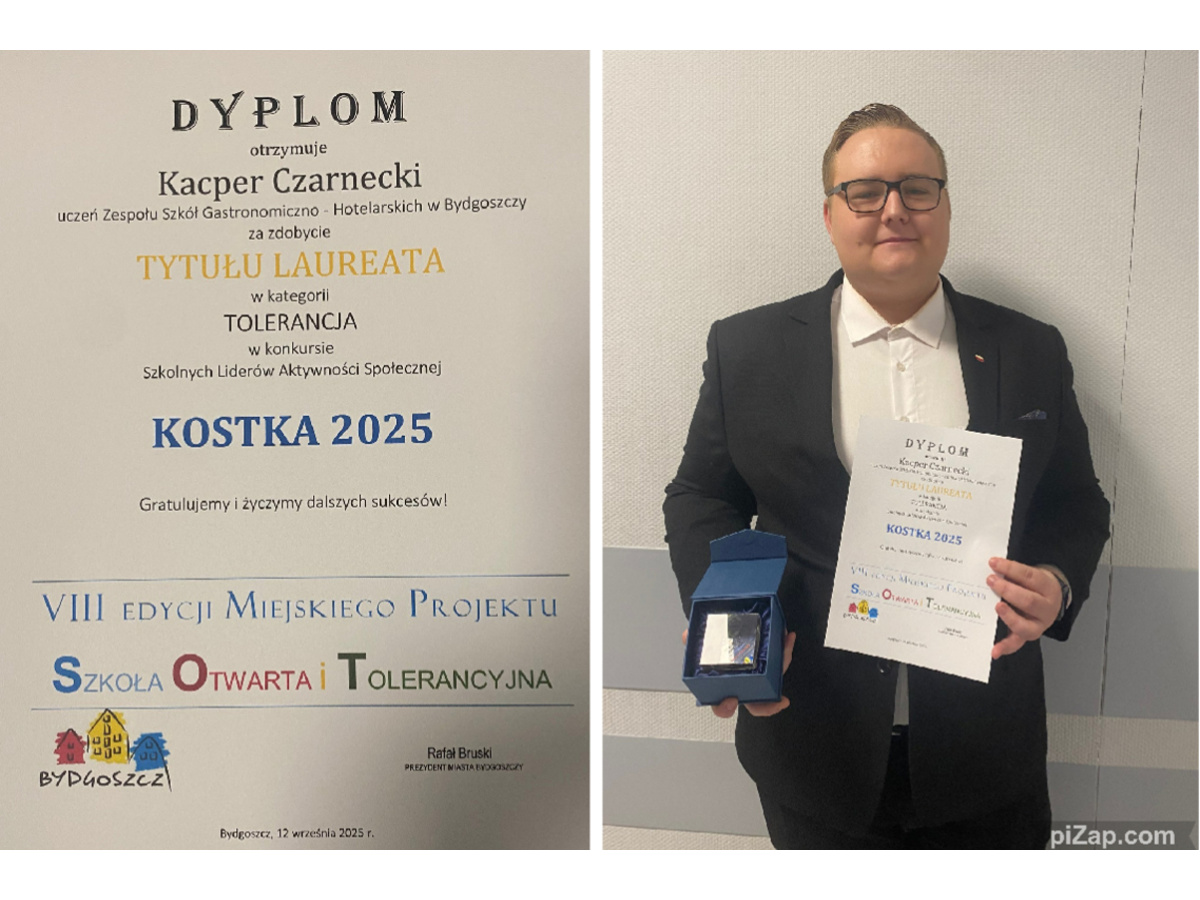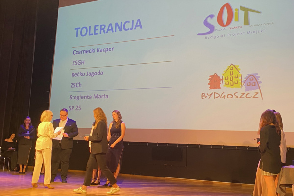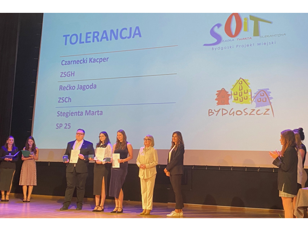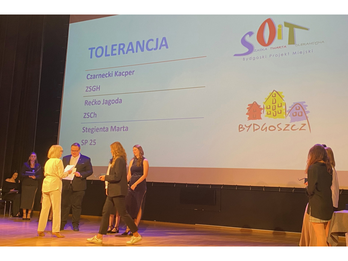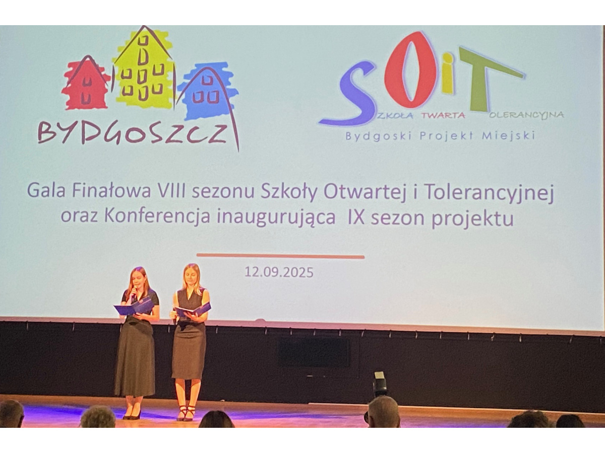 12 września w Pałacu Młodzieży odbyła się Gala Finałowa VIII sezonu Szkoły Otwartej i Tolerancyjnej i jednocześnie Konferencja inaugurująca IX sezon projektu. Podczas uroczystości zostały rozdane nagrody Kostka 2025 dla Szkolnych Liderów Aktywności Społecznej. Laureatem w kategorii tolerancja został nasz absolwent Kacper Czarnecki. Na gali reprezentowali nas: Kuba Kuczborski, Krzysztof Wiśniewski i Nikodem Górny z klasy 4dTG. Zapraszam wszystkich chętnych uczniów do udziału w akcjach projektu.
