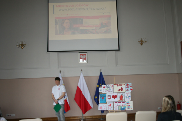 25 marca 2026 w naszej szkole odbyły się warsztaty zatytułowane „Honorowe krwiodawstwo” mające na celu rozpowszechnienie informacji dotyczących honorowego krwiodawstwa oraz rozbudzenie wrażliwości na drugiego człowieka, bezinteresowności i altruizmu wśród młodzieży. Spotkanie obejmowało wykład pana Jakuba Jeziorskiego z Regionalnego Centrum Krwiodawstwa i Krwiolecznictwa w Bydgoszczy oraz quiz wiedzy z zakresu krwiodawstwa. Za udzielenie poprawnych odpowiedzi uczestnicy otrzymali drobne upominki ufundowane przez RCKiK w Bydgoszczy.