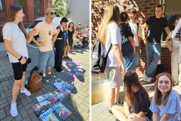 4 września z inicjatywy biblioteki szkolnej podczas długiej przerwy na dziedzińcu szkoły odbył się tegoroczny kiermasz podręczników. Wydarzenie to zawsze cieszy się dużym zainteresowaniem wśród uczniów wszystkich klas oraz absolwentów, którzy chętnie nas odwiedzają. Kiermasz jest okazją do wykorzystania swoich umiejętności marketingowych kupna i sprzedaży, negocjowania cen a także chwilą na rozmowy i spotkania.