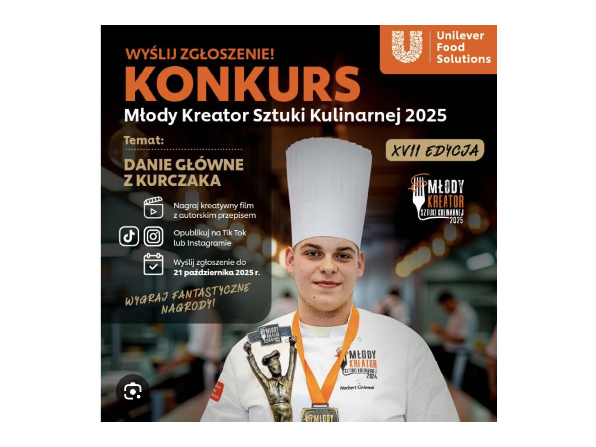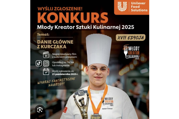 Z dumą informujemy, że Kornel Byzdra awansował do XVII ogólnopolskiego finału konkursu Młody Kreator Sztuki Kulinarnej 2025.
