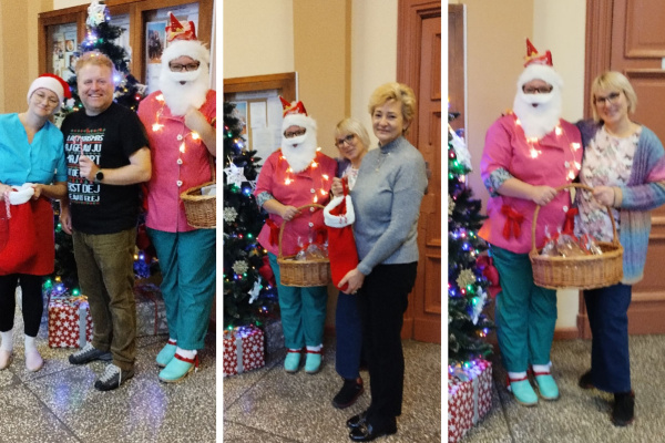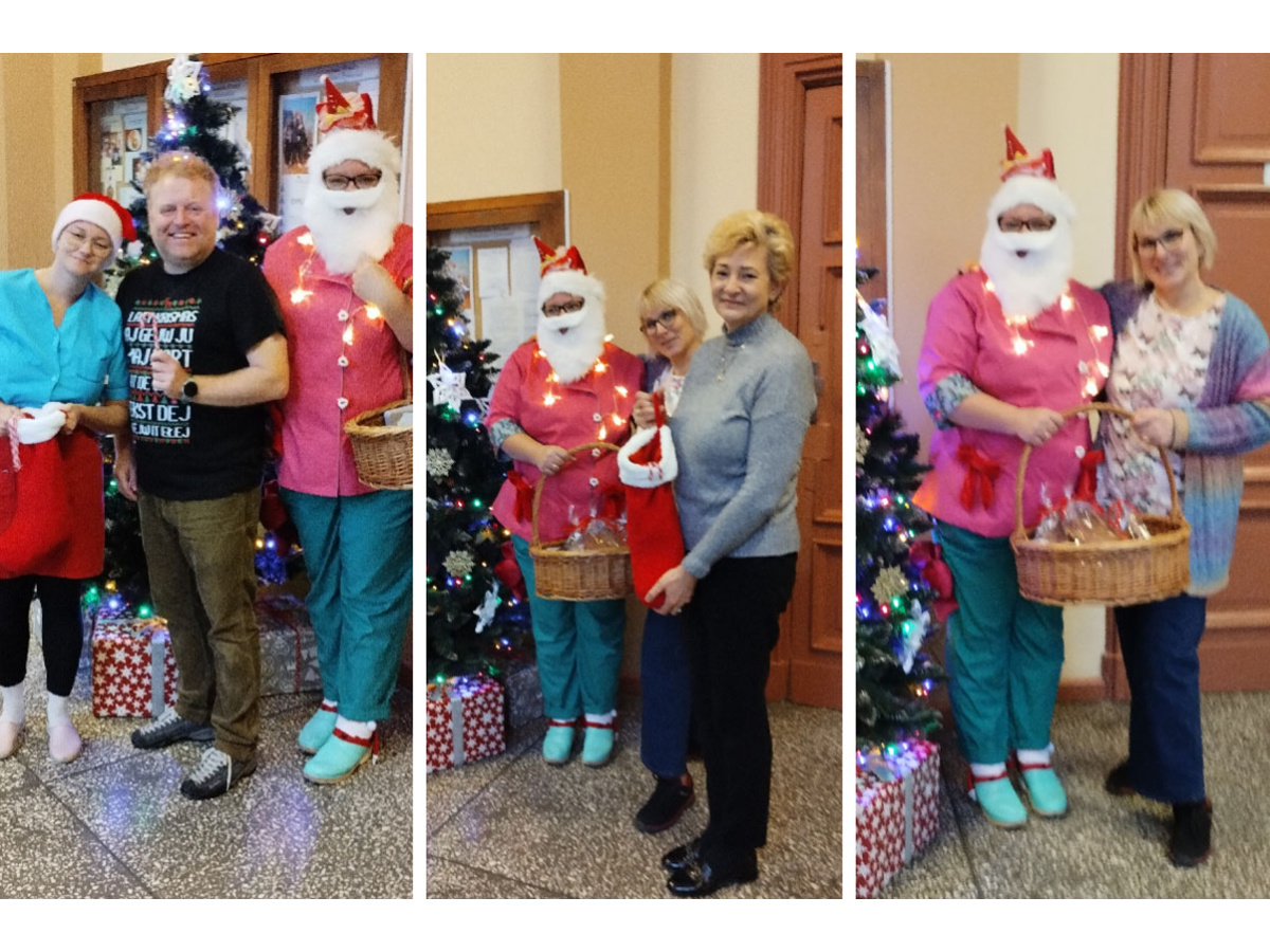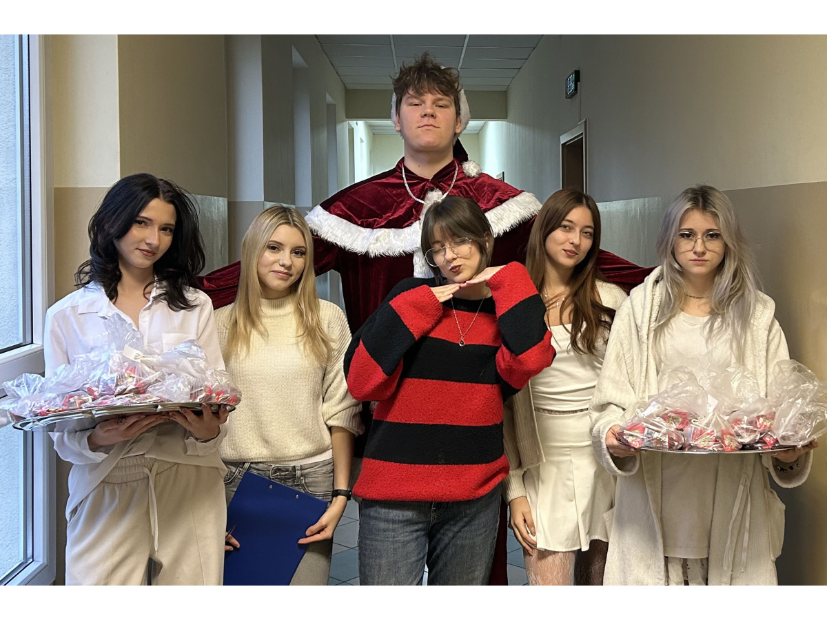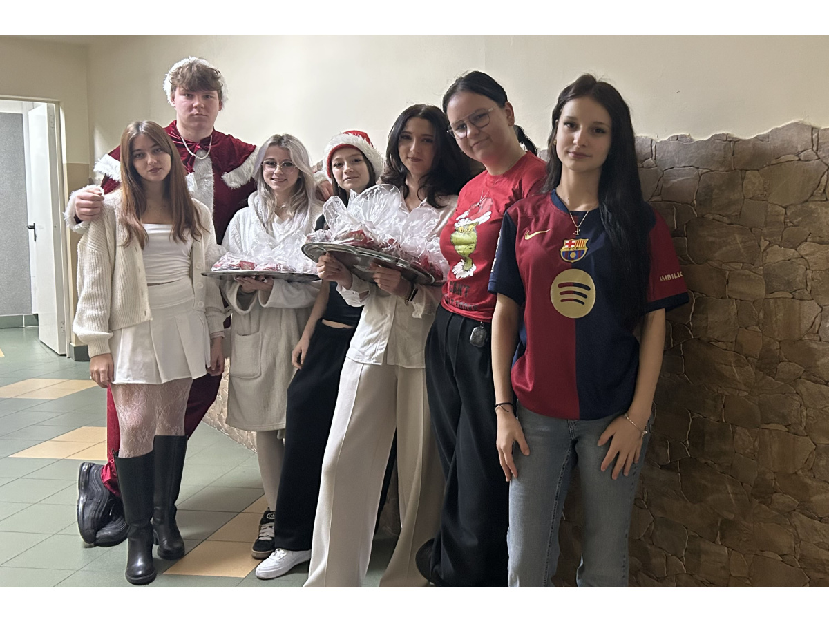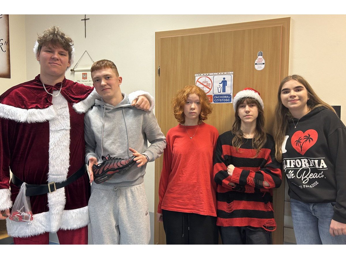 5 grudnia na korytarzach naszej szkoły zrobiło się świątecznie. Wśród choinek i dekoracji przemykał Mikołaj ze Śnieżynkami i elfami. W ich role wcielili się uczniowie, nauczyciele, pracownicy szkoły oraz nasi goście z przedszkola nr 66. Konkurs Mikołajkowy wygrała klasa 2aTG. Gratulujemy klasie i dziękujemy wszystkim, którzy wspólnie świętowali ten piękny grudniowy dzień obdarowując się drobnymi upominkami, uśmiechem i miłymi słowami.