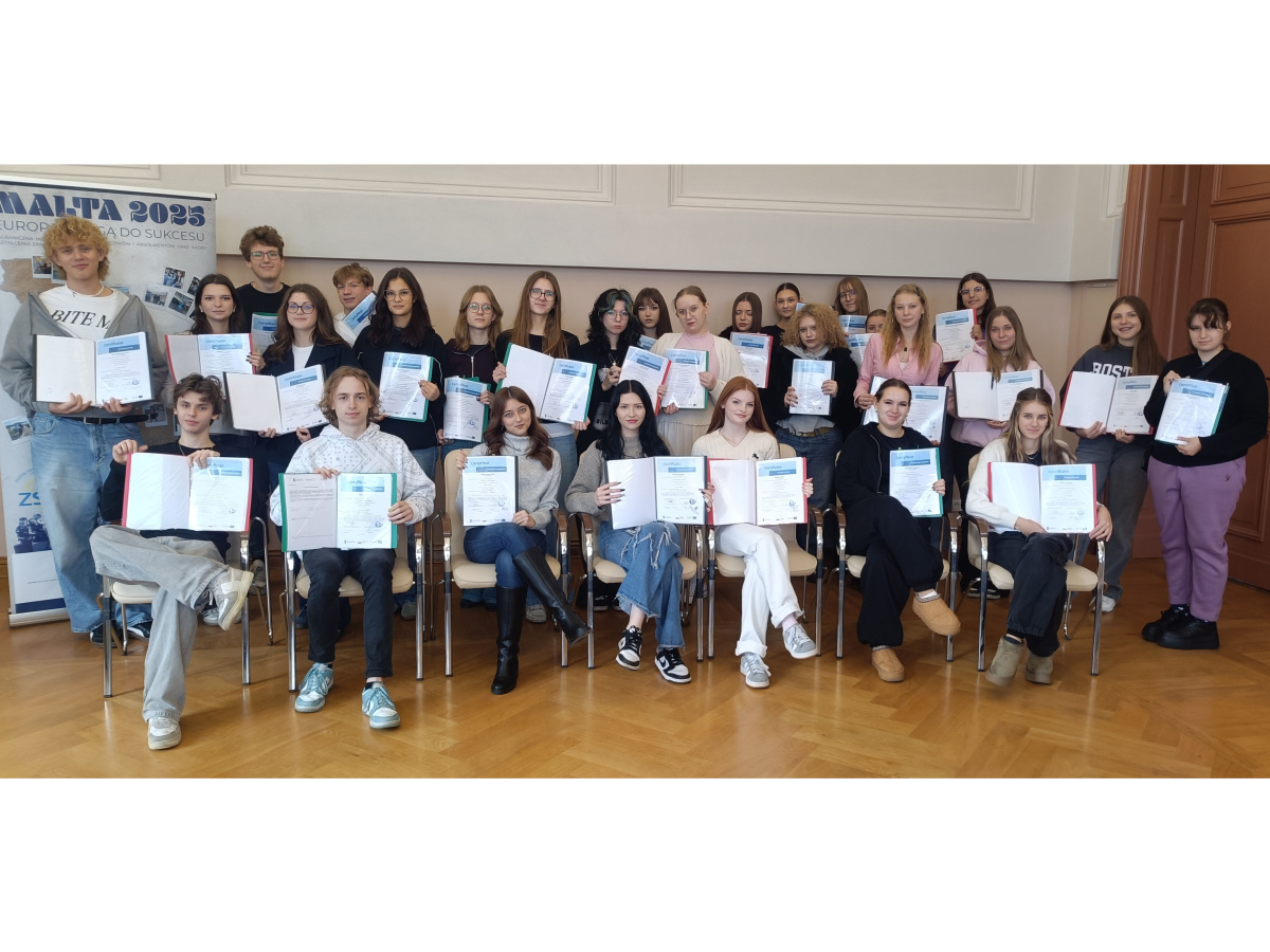 29.10.2025 w auli naszej szkoły odbyło się podsumowanie projektu unijnego „Europa – drogą do sukcesu”Erasmus+ finansowanego przez Fundusze Europejskie dla Rozwoju Społecznego 2021-2027 (FERS). W ramach tego projektu w terminie 06-19.04.2025 odbyły się staże zawodowe na Malcie dla 30 naszych uczniów i uczennic. Podczas spotkania podsumowującego przedstawiono założenia projektu, zrealizowane cele oraz rozdano 30 certyfikatów i dokumentów Europass Mobility. Wszyscy uczestnicy stwierdzili, że była to dla nich przygoda życia oraz cenne doświadczenie zawodowe.