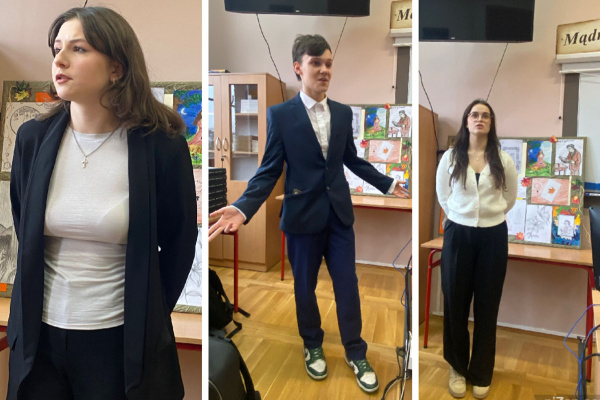 Pierwszą część potyczek otworzyły recytacje utworów przygotowanych przez uczniów. Miło nam poinformować, że laureatką pierwszego miejsca została Antonina Turska (klasa 4bTG), drugie miejsce przypadło Tymoteuszowi Słysz (klasa 4KH), na miejscu trzecim uplasowała się Łucja Tatarzyn (klasa 4bTG), natomiast wyróżnienie otrzymała Karolina Zajdlewicz (klasa 4bTG).