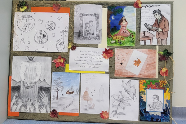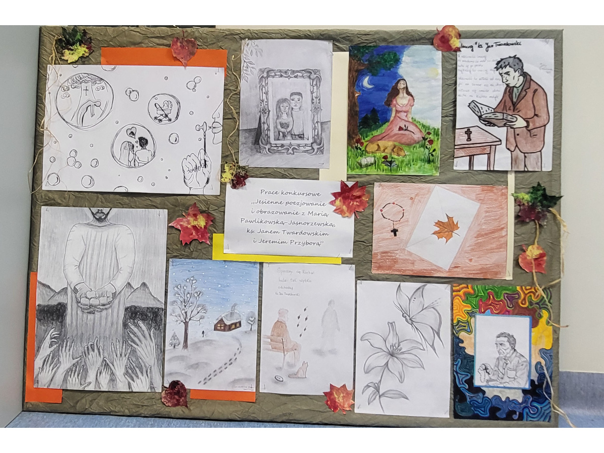 Potyczki artystyczne, inspirowane dziełami poetów, zaowocowały ciekawymi pracami plastycznymi. Miło nam poinformować, że w tej kategorii pierwsze miejsce przypadło Amelii Żukowskiej (klasa 4bTG), na drugim miejscu uplasowała się Ewa Fira (klasa 4bTG), na trzecim Dominik Gapiński (klasa 4KH), natomiast wyróżnienie otrzymała Oliwia Grochowska (klasa 4bTG).