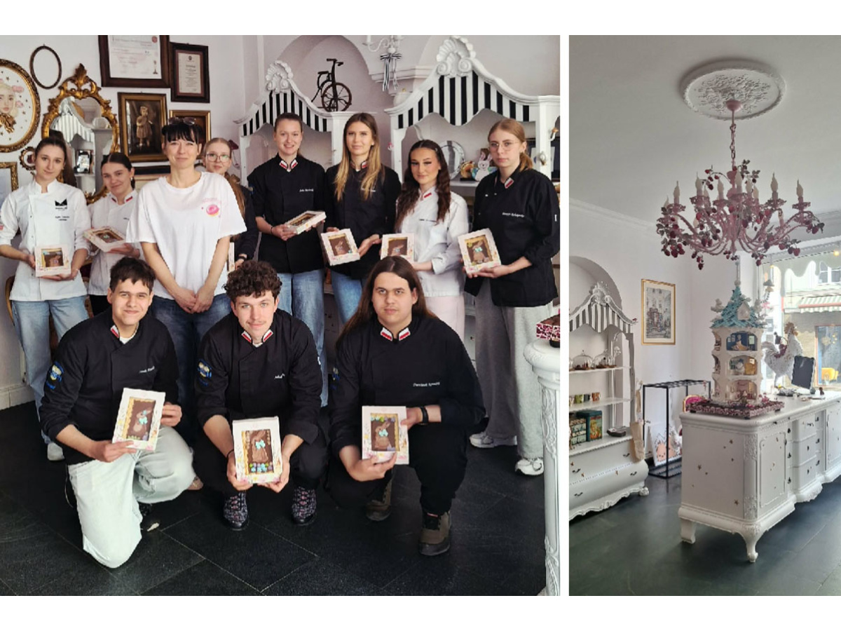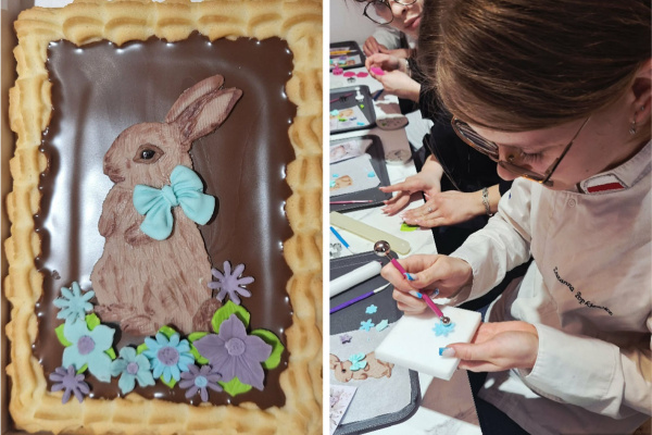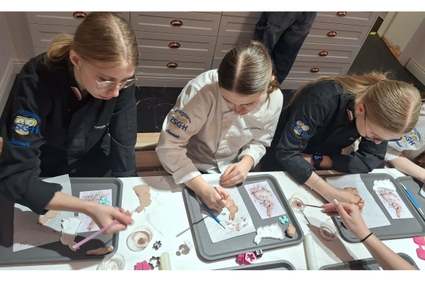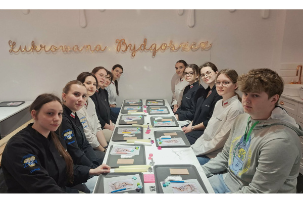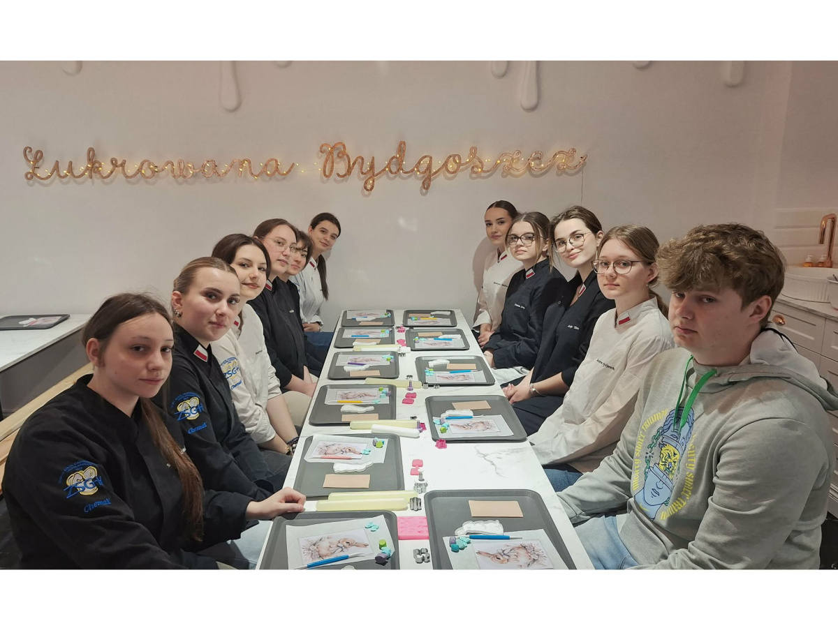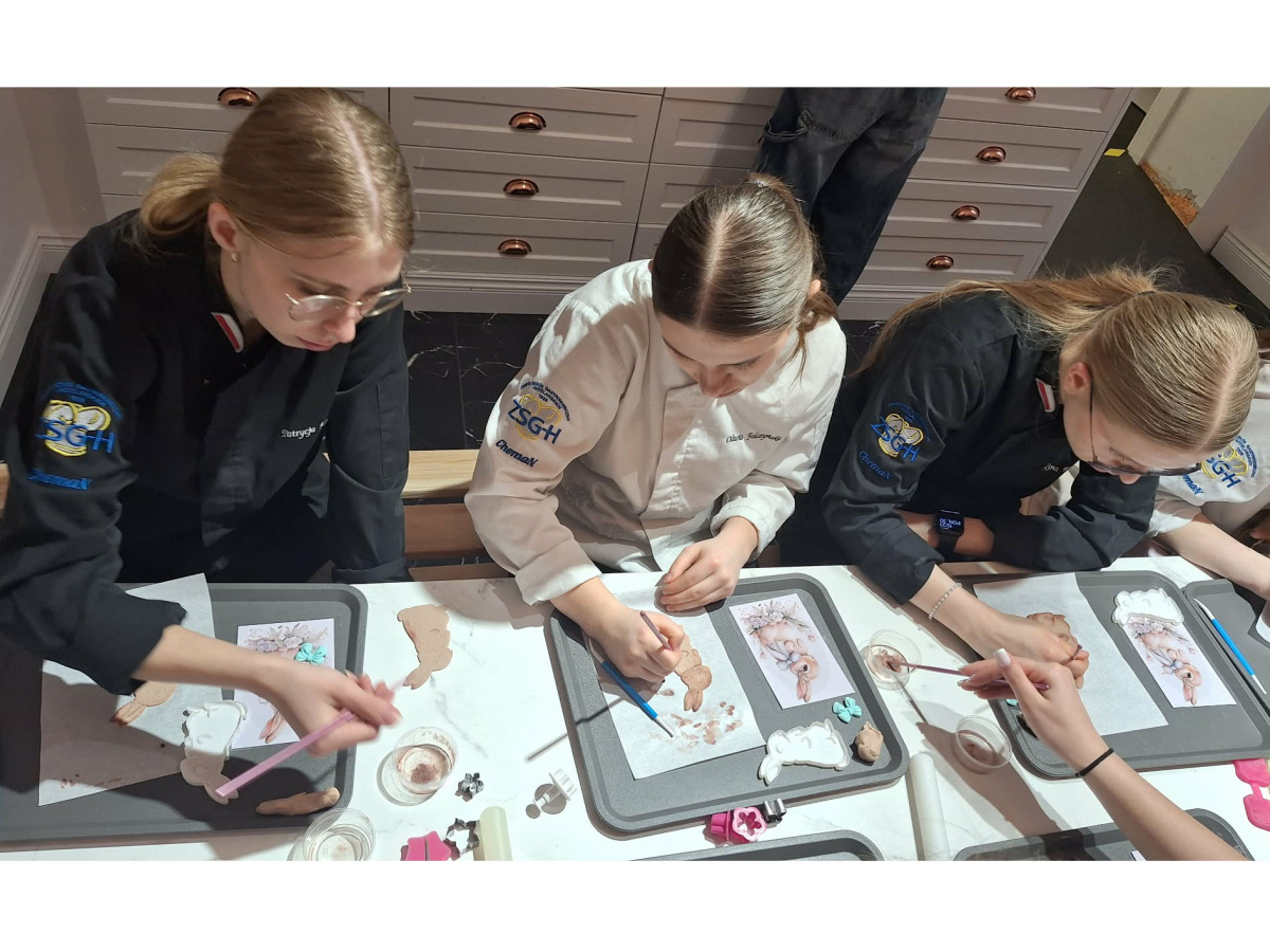 W poniedziałek 30 marca klasa 4bTG uczestniczyła w warsztatach dekorowania mazurków wielkanocnych w pracowni artystycznej Jowity Woszczyńskiej. Uczniowie na przygotowane wcześniej korpusy ciasta kruchego nakładali wykonane przez siebie elementy z masy cukrowej. Wydawać by się mogło, że to zabawa dla dzieci, ale tradycje świąteczne cieszą i małych i dużych. Dowodem na to było zaangażowanie w pracę i radość na twarzach uczniów.