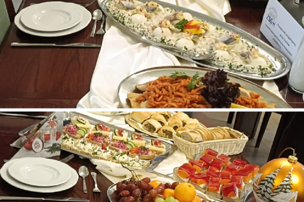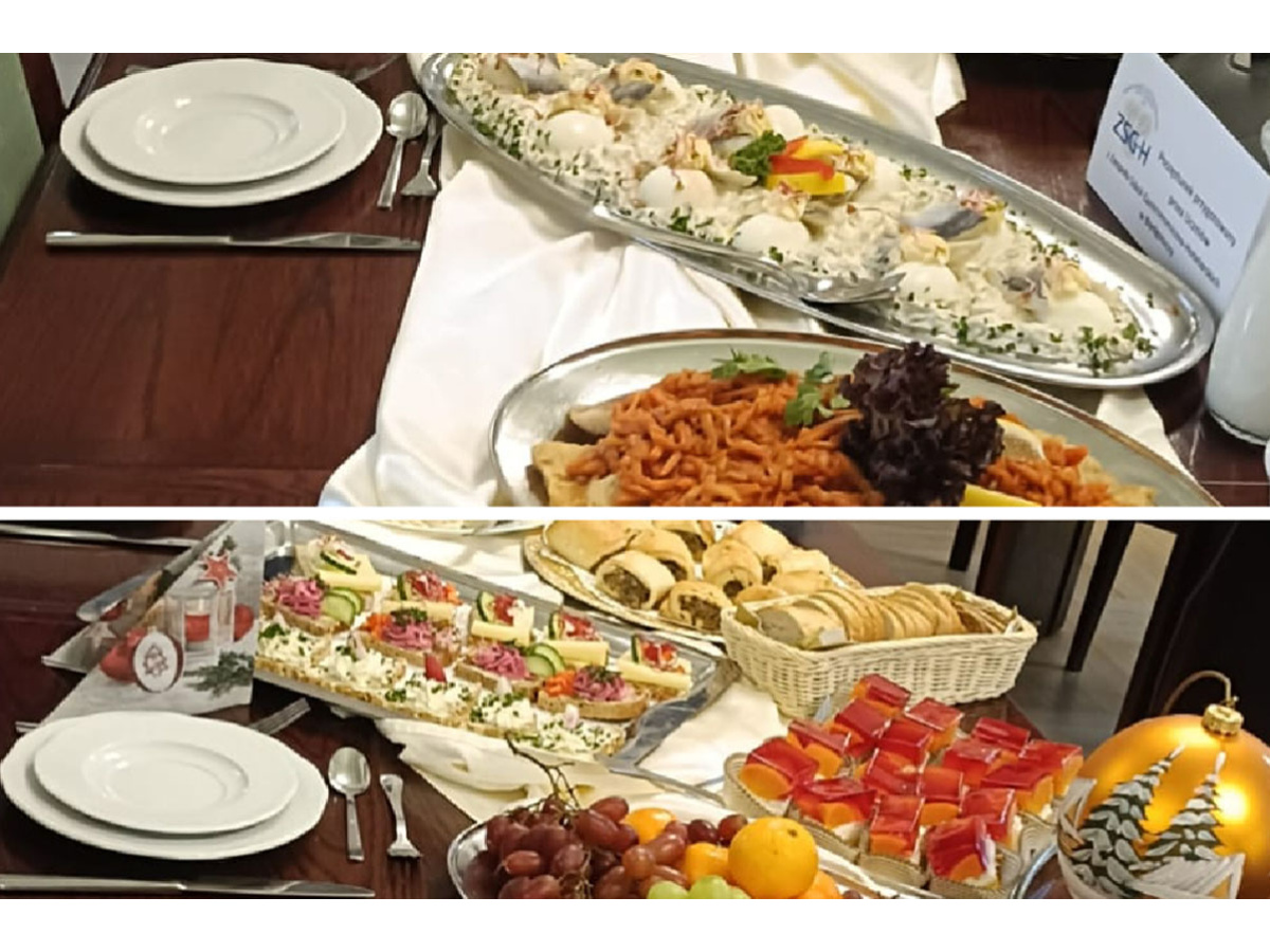 17.12.2025 Zespół Szkół Gastronomiczno-Hotelarskich miał przyjemność zarówno przygotować spotkanie wigilijne dla Prezydenta Bydgoszczy Rafała Bruskiego oraz Rady Miasta Bydgoszczy, jak i w nim uczestniczyć. Bogato zastawiony stół zachwycał wyglądem, smakiem i aromatem przygotowanych potraw. Obsługę nadzorowała pani Monika Zakrzewska z uczniami z klas 4eTG, 4dTG: Agatą Białkowską, Julią Kempińską, Patrycją Szymańską, Zuzanną Przybysz, Amelią Gaca, Marceliną Noak, Szymonem Bober, Michałem Sakowskim, Mikołajem Brodzińskim i Oskarem Leśniewskim.