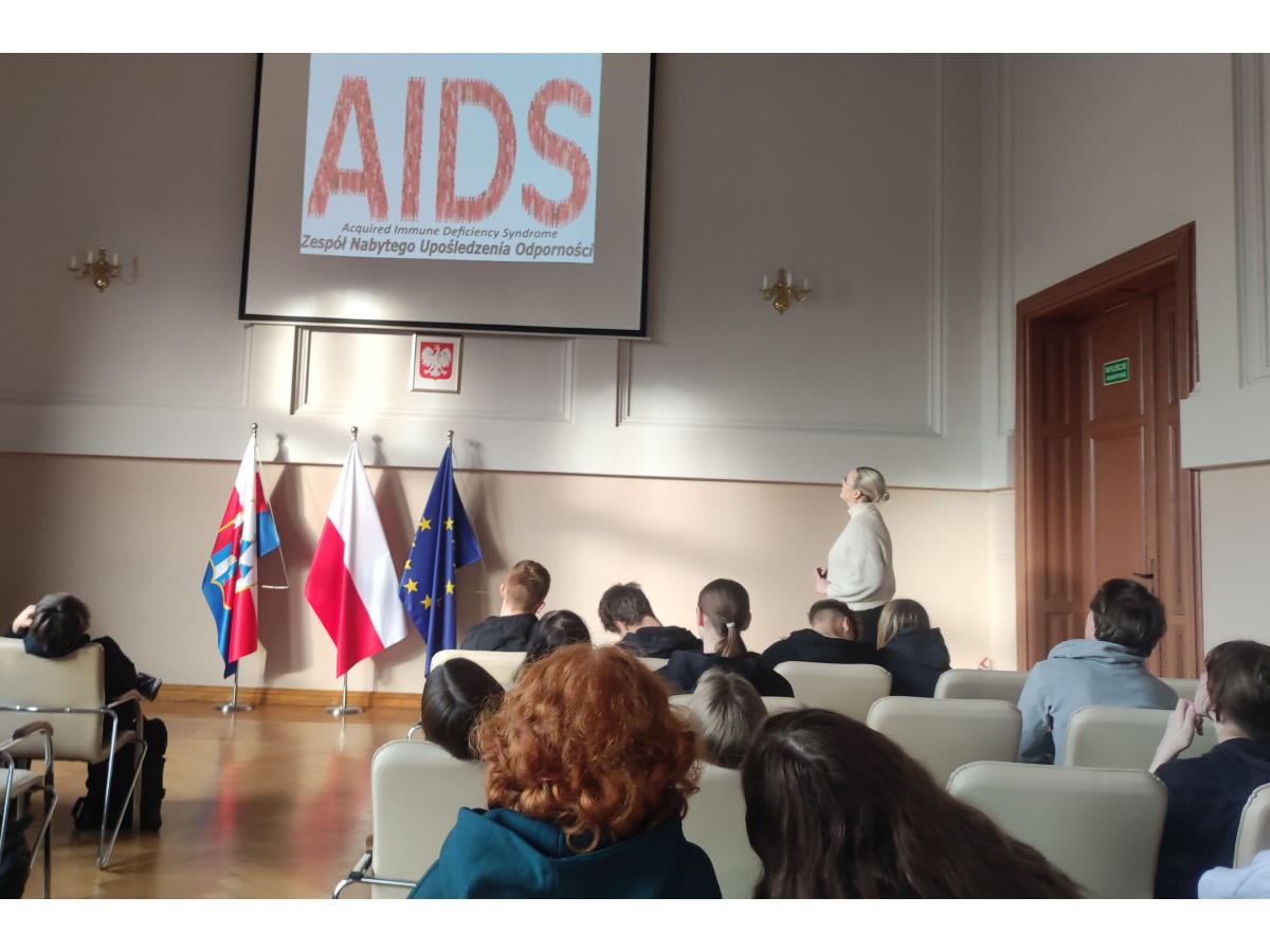 10 grudnia w ramach obchodów Światowego Dnia Walki z AIDSuczennice: Zuzanna Domżalska, Zuzanna Przybysz, Dominika Niedzielska z klasy 4eTG oraz Natalia Czerwińska z 2aTH przeprowadziły warsztaty dla koleżanek i kolegów z klas pierwszych. Spotkania były okazją do przekazania podstawowych informacji na temat wirusa HIV i samej choroby AIDS. Młodzież dowiedziała się o sposobach walki z nimi na świecie oraz możliwościach zarażenia się, przed którymi chroni nas znajomość dróg zakażenia i profilaktyka.