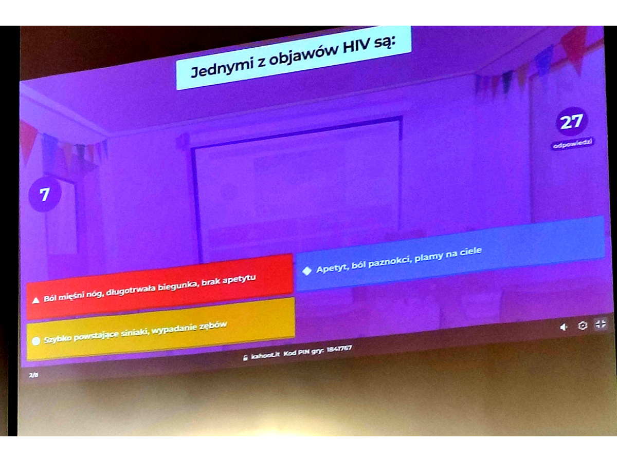 W ramach podsumowania dziewczęta przeprowadziły dla chętnych quiz, w którym uczniowie mogli sprawdzić swój zasób wiedzy na temat HIV i AIDS.