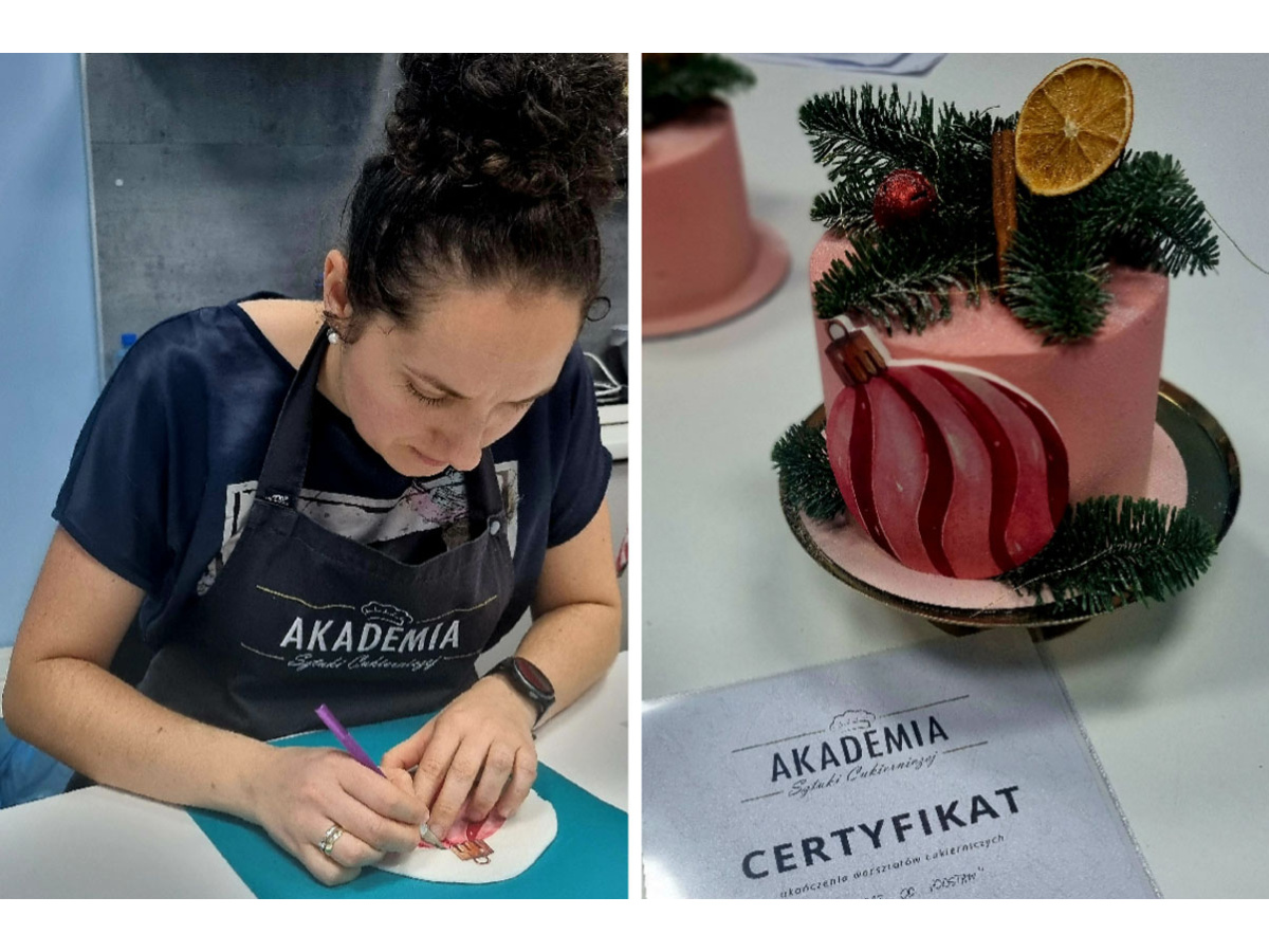 14 grudnia Pani Agnieszka Lica, nauczyciel praktycznej nauki zawodu, uczestniczyła w szkoleniu „Tort od podstaw - tynkowany - edycja świąteczna”. Warsztaty poprowadziła Izabela Komor-Augustjańska w Akademii Sztuki Cukierniczej w Starogardzie Gdańskim. Uczestnicy poznali krok po kroku proces tworzenia tortu od składania, idealnie gładkie tynkowanie po zdobienie. Było dużo wiedzy, praktyki, cennych wskazówek i świetnej atmosfery.