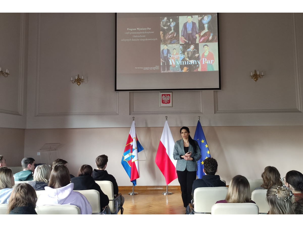 19 listopada 2025 młodzież naszej szkoły uczestniczyła wykładzie pt.„Transplantologia w sztuce i social mediach”, który przeprowadziła dr n. med. Aleksandra Woderska - Jasińska z Kliniki Transplantologii i Chirurgii Ogólnej Szpitala Uniwersyteckiego nr 1 w Bydgoszczy. Pani doktor jest również regionalnym koordynatorem pobierania i przeszczepiania narządów Centrum Organizacyjno-Koordynacyjnego ds. Transplantacji POLTRANSPLANT.