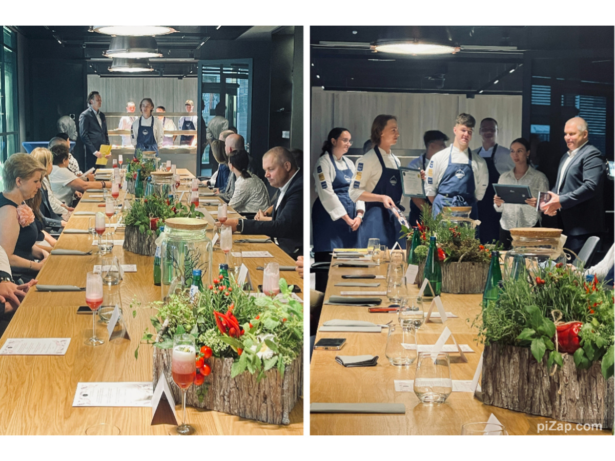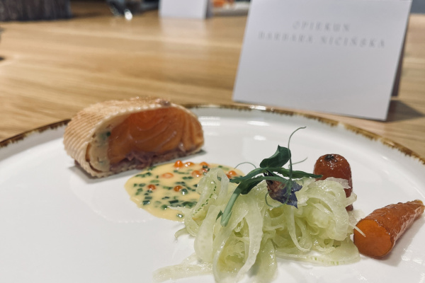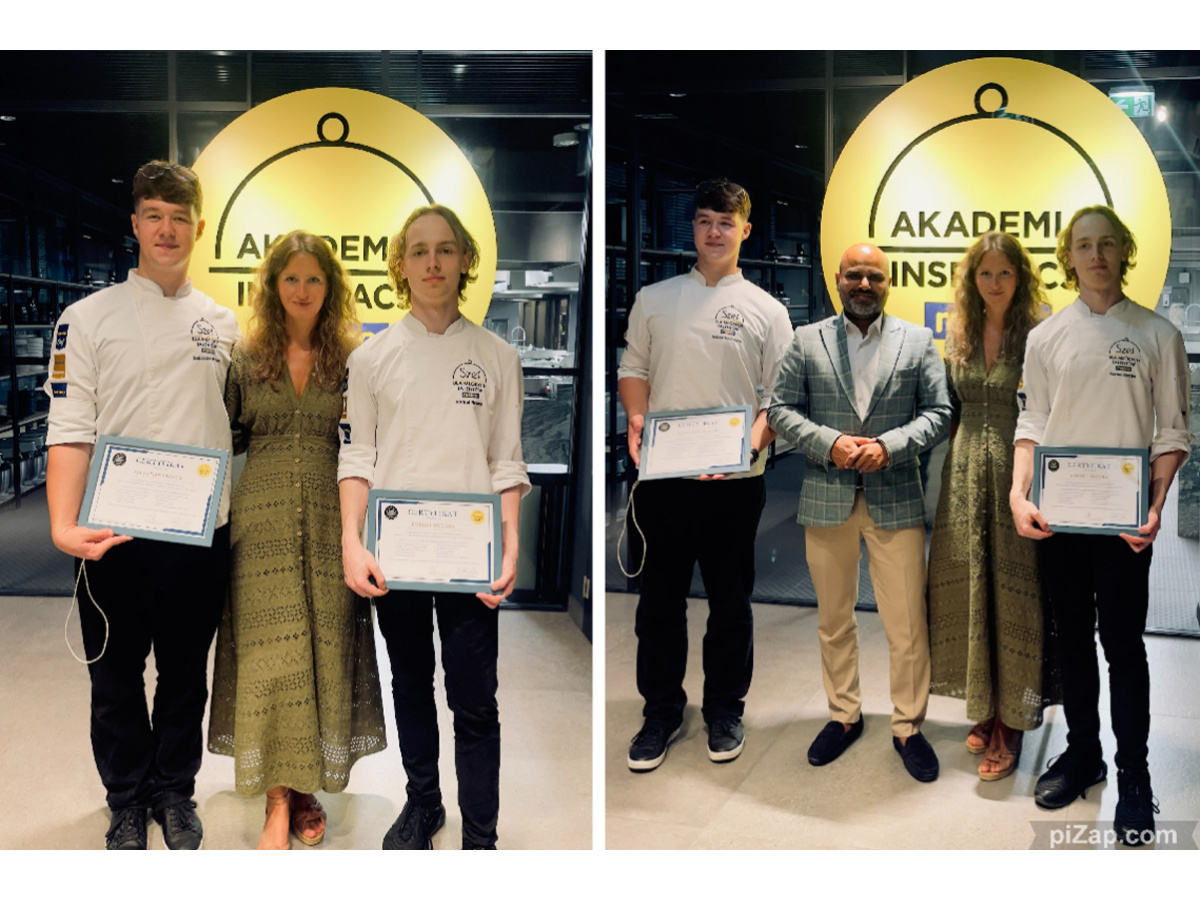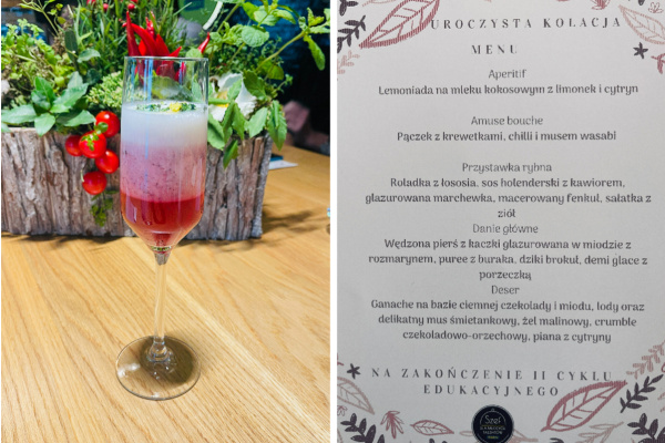 4 września 2025 roku w Akademii Inspiracji w Warszawie odbyło się uroczyste zakończenie projektu Szef dla Młodych Talentów MAKRO. Uczniowie naszej szkoły Kornel Byzdra i Sebastian Przeor otrzymali certyfikaty ukończenia rocznego cyklu edukacyjnego. W jego skład wchodziło szesnaście szkoleń oraz płatny staż w restauracji hotelu Vienna House by Wyndham Mokotow Warsaw. Zwieńczeniem była uroczysta kolacja przygotowana przez wszystkich absolwentów dla nauczycieli oraz opiekunów. Nasi uczniowie przygotowali menu składające się z pięciu autorskich dań. Menu obejmowało: lemoniadę na mleku kokosowym z limonek i cytryn; pączka z krewetkami, chilli i musem wasabi; roladkę z łososia, sos holenderski z kawiorem, glazurowaną marchewkę macerowany fenkuł, sałatkę z ziół; wędzoną pierś z kaczki glazurowaną w miodzie z rozmarynem, puree z buraka, dziki brokuł, demi glace z porzeczką; ganache na bazie ciemnej czekolady i miodu, lody oraz delikatny mus śmietankowy, żel malinowy, crumble czekoladowo - orzechowe, pianę z cytryny.