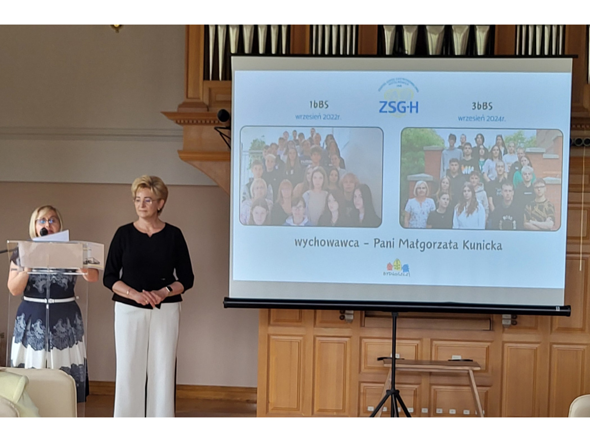 27 czerwca w auli szkolnej odbyła się uroczystość pożegnania klas trzecich branżowych. Wychowawczynie wręczyły swoim absolwentom wyróżnienia, nagrody i świadectwa. Uhonorowano również rodziców, którzy współpracowali ze szkołą. Najbardziej aktywnym uczniom wręczono podziękowania za pracę w SUZSG-H i Szkolnym Klubie Wolontariatu oraz uczestnikom wydarzeń sportowych. W trakcie uroczystości w szczególny sposób podziękowano Super Uczniom Gastronomika: Stanisławowi Przedwojskiemu z 3aBS i Michałowi Kędzierskiemu z 3bBS za bardzo dobre wyniki w nauce, wzorowe zachowanie i aktywną pracę w Radzie SUZSG-H w Bydgoszczy.