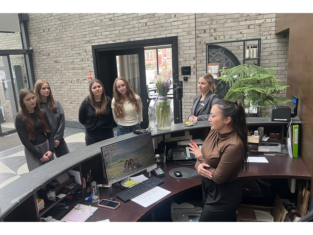 W dniach 11–12 marca uczniowie klas 4aTH oraz 3aTH uczestniczyli w warsztatach dotyczących obsługi gości hotelowych, które odbyły się w Rezydencji Sowa. Spotkanie zostało zorganizowane na zaproszenie absolwentki naszej szkoły – Liliany Zdunkiewicz. Szczególną uwagę poświęcono oczekiwaniom gości, standardom obsługi oraz znaczeniu kultury osobistej, komunikacji i dbałości o szczegóły w codziennej pracy z klientem. Warsztaty miały charakter praktyczny. Pozwoliły uczniom skonfrontować wiedzę teoretyczną zdobytą w szkole z realiami pracy w obiekcie hotelarskim. Udział w spotkaniu był dla uczniów bardzo wartościowym doświadczeniem oraz okazją do poznania specyfiki pracy w branży hotelarskiej z perspektywy praktyków. Serdecznie dziękujemy pani Lilianie Zdunkiewicz za zaproszenie oraz pani kierownik recepcji, za poświęcony czas i podzielenie się swoim doświadczeniem zawodowym. Wyrazy wdzięczności kierujemy również do całego zespołu Rezydencji Sowa za życzliwe przyjęcie uczniów oraz przygotowanie interesujących i inspirujących warsztatów.
