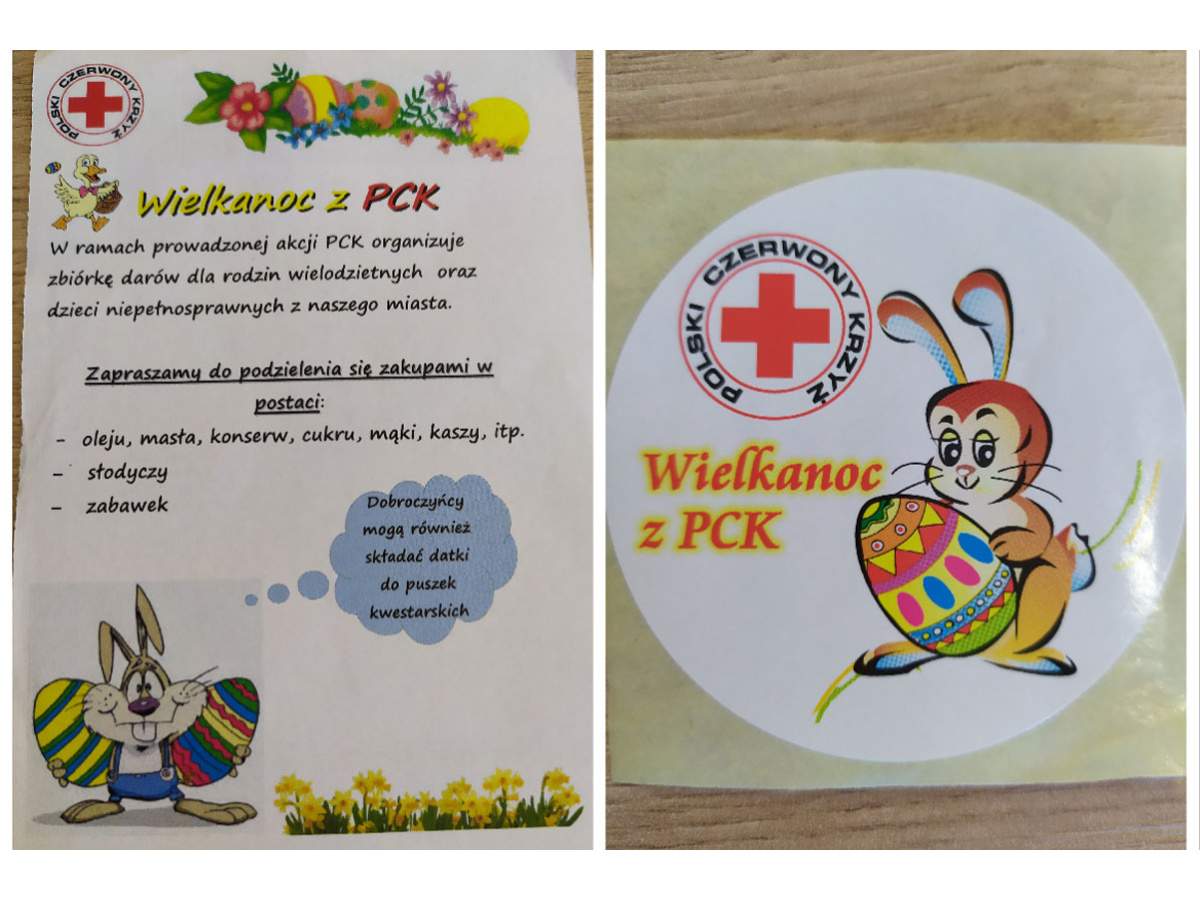27 marca wolontariuszki z klasy 2aTG: Nicole Zielińska, Kaja Mikołowska,oraz z 3KH: Julia Czempińska, Magdalena Wnęk, Vanessa Warchoł pomagały w akcji charytatywnej „Wielkanoc z PCK”. Zbierały w marketach Eurospar na ulicy Nakielskiej i Grzymały-Siedleckiego artykuły spożywcze dla rodzin wielodzietnych, samotnych matek, dzieci i młodzieży z niepełnosprawnością i dla osób objętych całoroczną opieką PCK w Bydgoszczy.