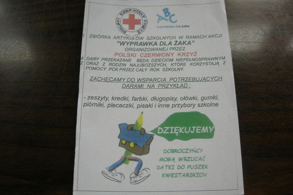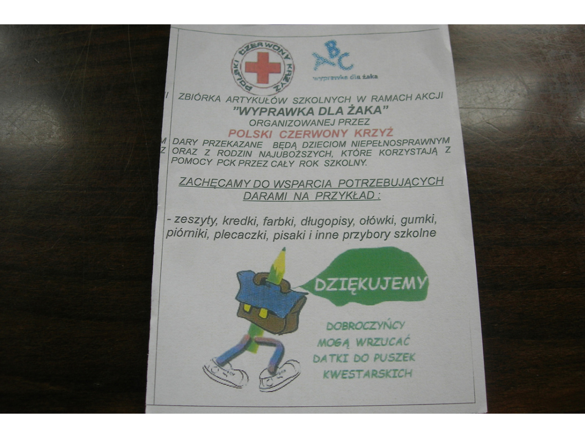 05.09. wolontariusze z klasy 2aTH: Alina Drobyniak, Vladyslava Tsukanova, Valerii Konopolskyi uczestniczyli w akcji wolontariackiej PCK „Wyprawka dla Żaka”. Uczniowie w Carrefourzew Fordonie, kwestowali i zbierali artykuły spożywcze i materiały papiernicze dla rodzin wielodzietnych, samotnych matek, dzieci i młodzieży z niepełnosprawnością oraz dla osób objętych całoroczną opieką PCK.